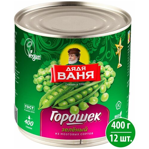 Упаковка из 12 штук Зелёный горошек Дядя Ваня 400г