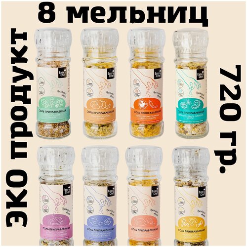 Набор специй в больших мельницах , 8 шт. (EasyChef)