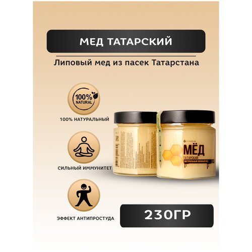 Натуральный липовый мед Татарский, постный продукт от экодинар, 230 гр.