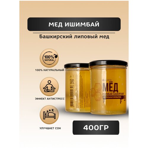 Натуральный липовый мед Ишимбай, Башкирский, постный продукт от экодинар, 400 гр.