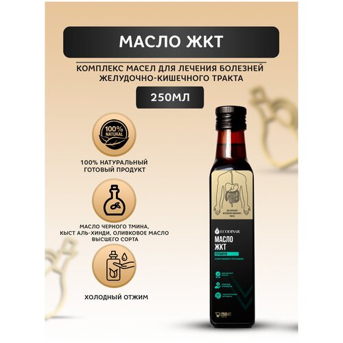 Пищевое нерафинированное растительное масло для ЖКТ от Эко динар 250 мл, комплекс для желудка и кишечника из масел холодного отжима