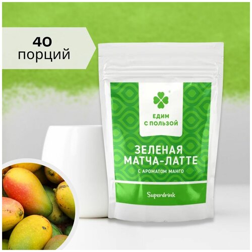 Матча-латте зеленая / чай 200 г., со вкусом манго. Суперфуд, витамины, антиоксиданты. Натуральный пищевой краситель