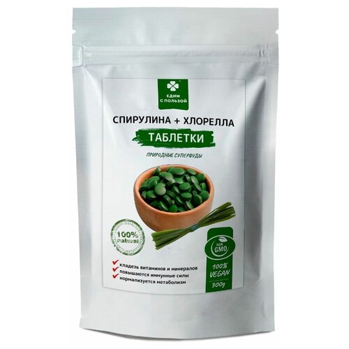 Спирулина Хлорелла,2 в 1, 600 таблеток по 500 мг / Суперфуд / VEGAN / Морские водоросли для Иммунитета
