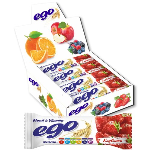 Батончик мюсли БАД Ego "Клубника с железом и витаминами в йогуртовой глазури" 25 г., 30 шт.
