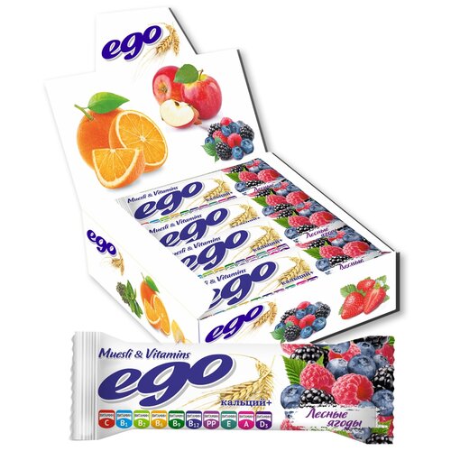 Батончик мюсли БАД Ego "Лесные ягоды с кальцием и витаминами в йогуртовой глазури" 25 г., 30 шт.