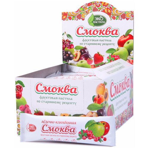 Пастила ЭКО пастила яблочно-клюквенная, клюква-яблоко, клюква, фруктовый, яблоко, 30 г
