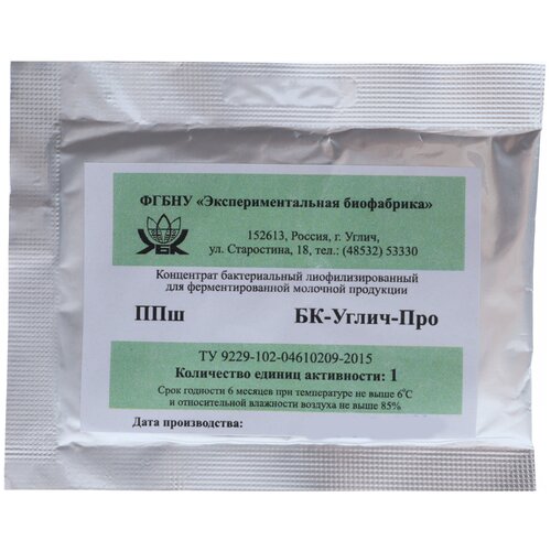 Мезофильная закваска БК-Углич-№6, 1EA