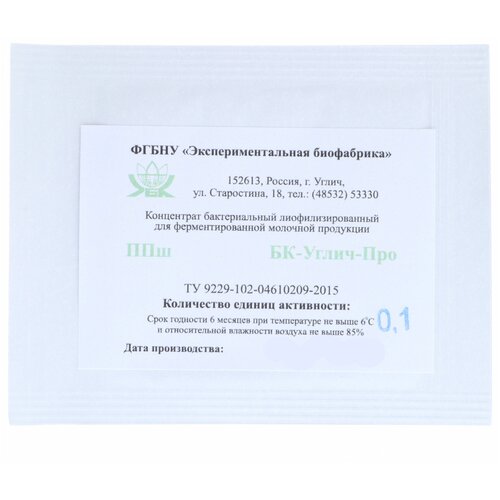 Мезофильная закваска БК-УГЛИЧ-№4 0,1ЕА (на 4-30 л молока)