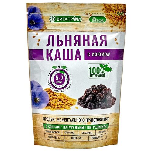 Эльфа Каша льняная с изюмом, дой-пак, 300 гр, Эльфа
