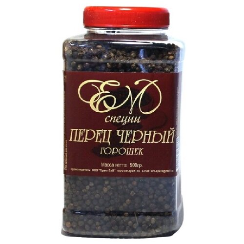 Перец черный "горошек" ЕМ специи, пл/бан. 500 гр.