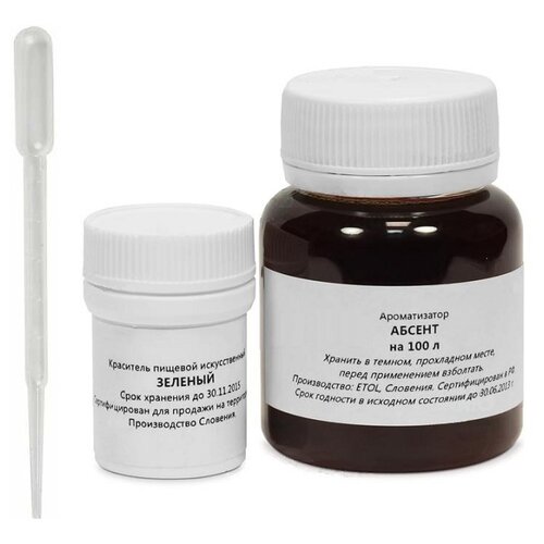 Вкусовой концентрат Абсент на 100 л. (ароматизатор пищевой Etol), краситель, пипетка в подарок
