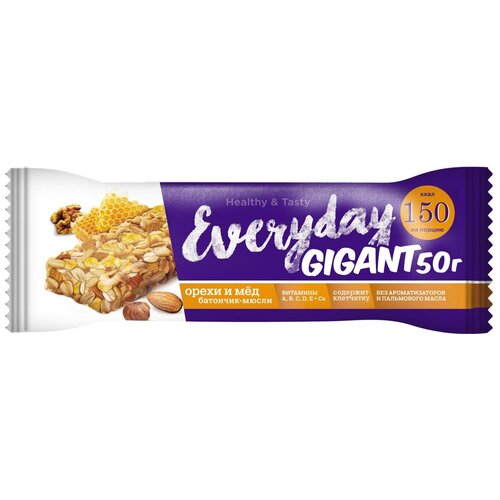 Батончик-мюсли Everyday Gigant "с орехами и медом", шоу-бокс 50г*24шт