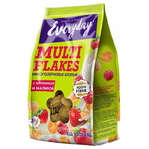 Хлопья EVERYDAY мультизерновые с клуб.и малиной, пакет 200г