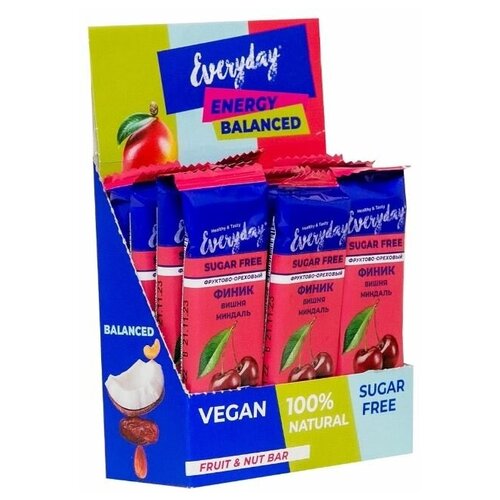 Фруктово-ореховый батончик Everyday SUGAR FREE "Вишня-миндаль" 45 гр., шоубокс 12 шт.