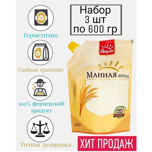 Крупа манная, манка набор 3 шт 600 гр