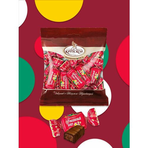 Конфеты шоколадные Ромашковый букет глазированные помадные с добавлением какао-порошка и ванильно-ромовым вкусом ТМ Фабрика им. Крупской, 200г