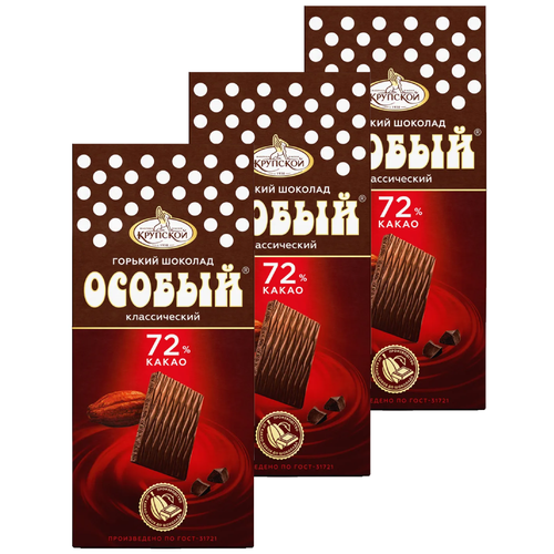 Шоколад Особый темный оригинальный 72% какао, набор из 3 шт
