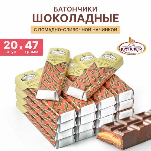 Шоколадный батончик Крупской, темный шоколад, с помадно-сливочной начинкой, 20шт х 50г