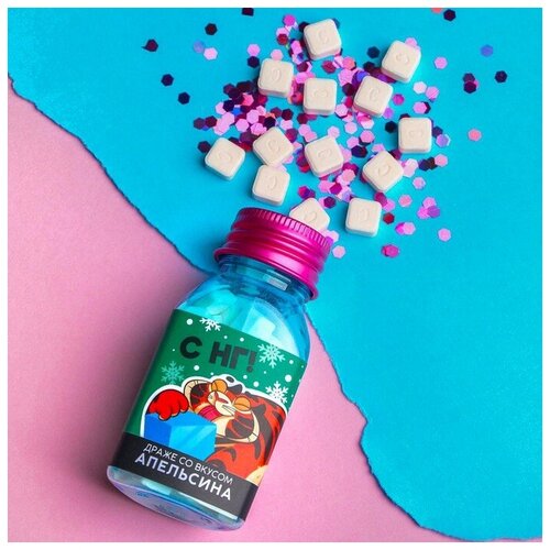 Драже в цветной банке "С Нг", вкус: апельсин, 22 г