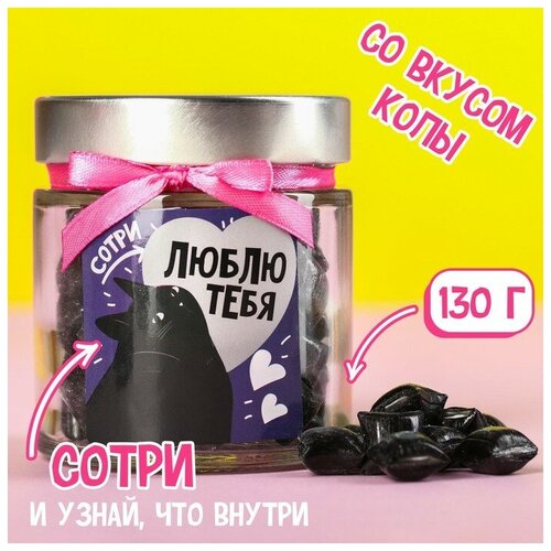 Леденцы в стеклянной банке «Люблю тебя», вкус: кола, в стеклянной банке со скретч слоем, 130 г.