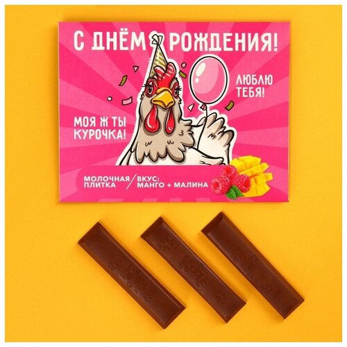 Молочная плитка «Курочка» с кусочками манго и малины, 43 г.