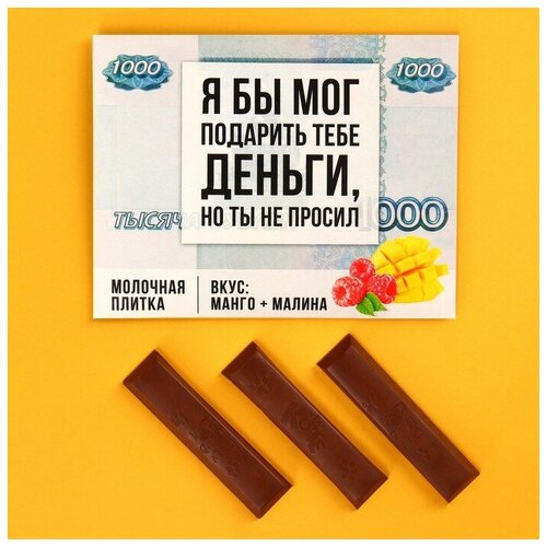 Молочная плитка «Деньги» с кусочками манго и малины, 43 г.