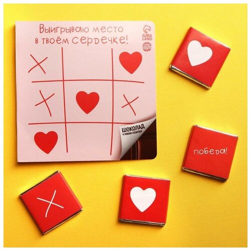 Молочный шоколад «Выигрываю место в твоём сердечке» открытка 4 шт. х 5 г.