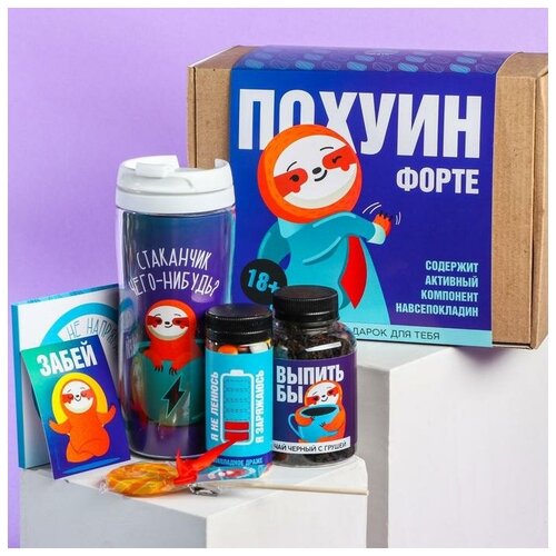 Набор «Похуин»: чай. драже. шоколад. термостакан. леденец 6487206