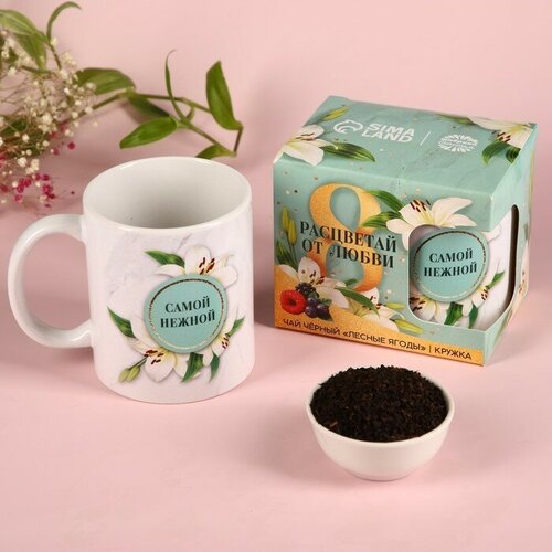 Набор «Расцветай от любви», чай чёрный с лесными ягодами 50 г., кружка