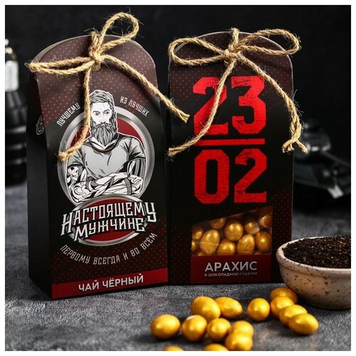 Набор «23 02»: чай чёрный, орехи в шоколадной глазури / 23 февраля / Подарок
