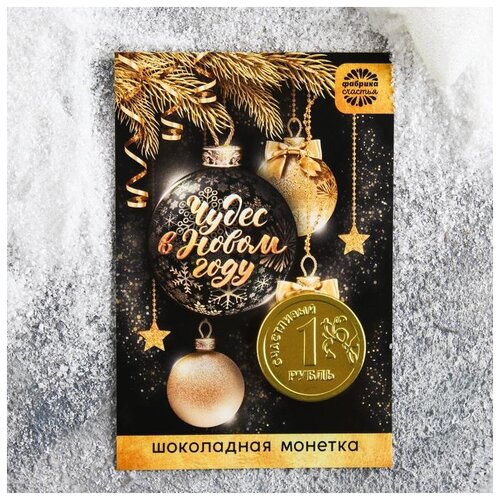Открытка с шоколадной монетой "Чудес в Новом году" 4427441