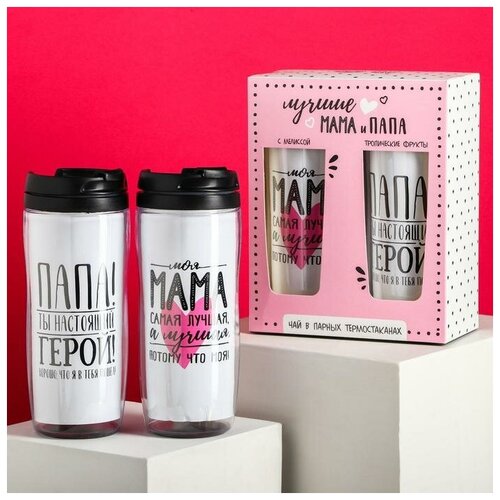 Парные термостаканы «Маме и папе»: мелисса 20 г, тропические фрукты 20 г, 2 шт по 250 мл 5545322