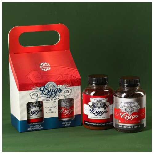Подарочный набор «23 февраля», чай чёрный с травами 50 г., кофе молотый, вкус: красный апельсин, 100 г.