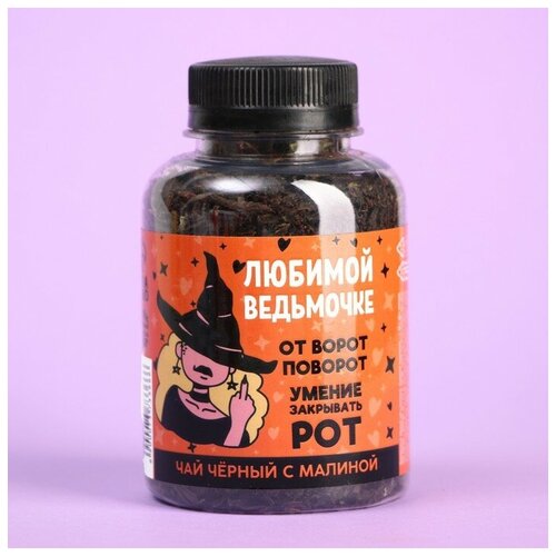 Подарочный чёрный чай с малиной «Любимой ведьмочке», 50 г / 8 марта / Подарок