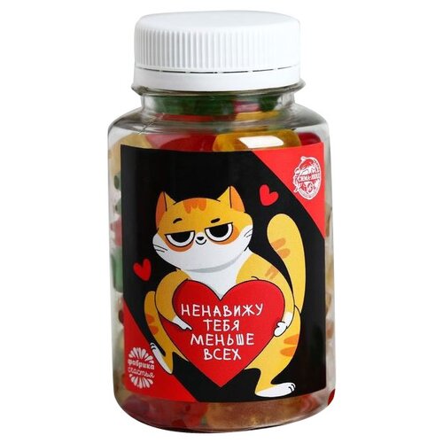 Фабрика счастья Леденец XXL на палочке «Ненавижу тебя меньше всех»: сердце, тутти-фрутти, 120 г.