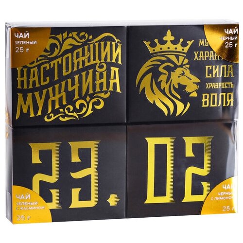 Фабрика счастья Подарочный набор 4 вида чая «23.02», чай чёрный, зелёный, чёрный с лимоном, зелёный с жасмином, 25 г. х 4 шт.