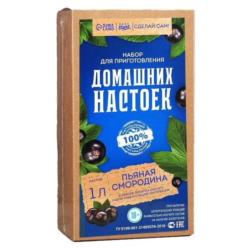 Фабрика счастья Подарочный набор для приготовления настойки "Пьяная смородина": травы и специи 73 г, бутылка 1 л