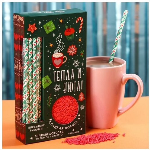 Фабрика счастья Подарочный набор "Тепла и уюта": горячий шоколад (4 шт. x 25 г.), посыпка, трубочки