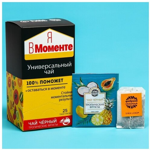 Фабрика счастья Подарочный чёрный чай «Я в моменте»: тропические фрукты, 25 пакетиков х 1,8 г.