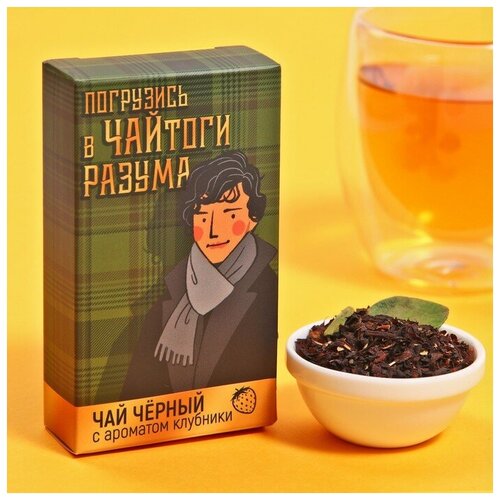 Фабрика счастья Чёрный чай «ЧАЙтоги разума», с мятой и клубничными сахарными сердечками, 20 г.