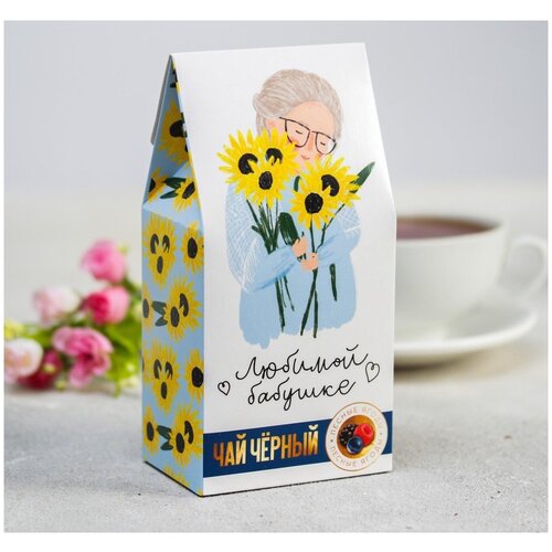 Чай в домике "Любимой бабушке, подсолнухи", 50 г / Подарок / Сладкий подарок