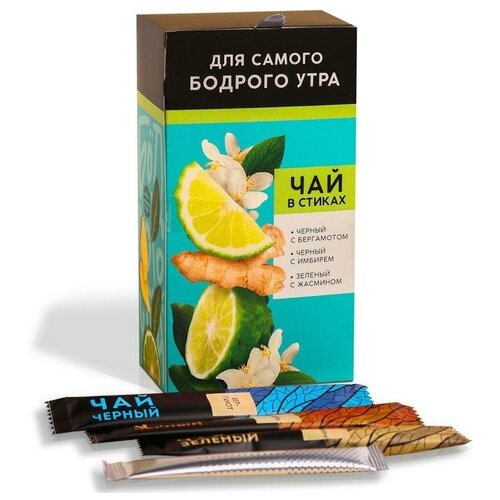 Чай в стиках Бодрого утра, вкусы: бергамот, имбирь, жасмин, 24 шт. Фабрика счастья 5538977