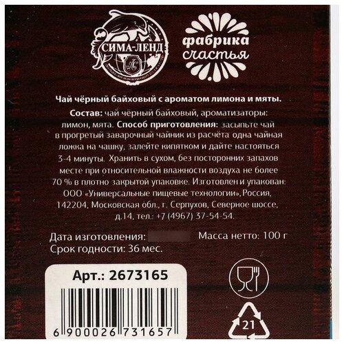 Чай чёрный «Любимому воспитателю», в коробке, лимон и мята, 100 г