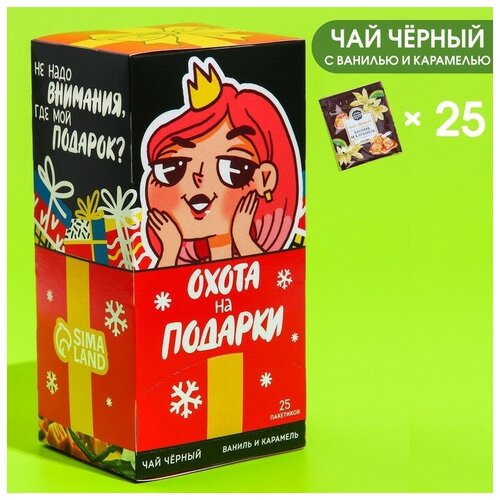 Чай чёрный в пакетиках «Охота на подарки», вкус: ваниль и карамель, 25 шт. х 1,8 г.