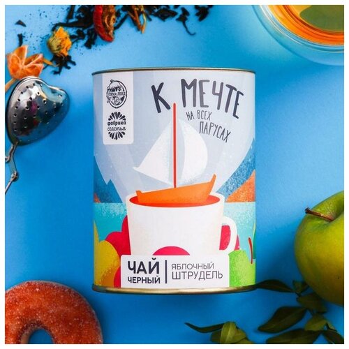 Чай чёрный в тубусе «К мечте на всех парусах», вкус: яблочный штрудель,100 г