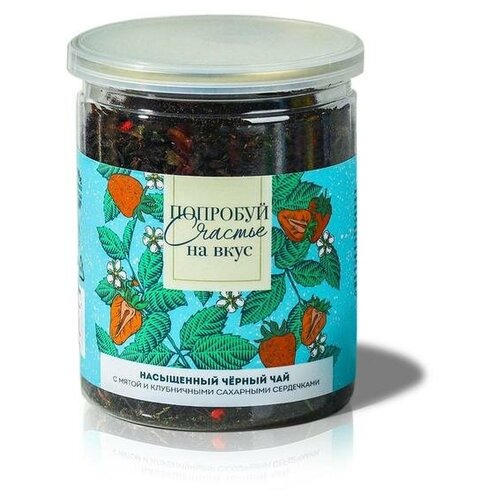 Чёрный чай «Попробуй чай на вкус». с мятой и клубничными сахарными сердечками. 60 г 6774122