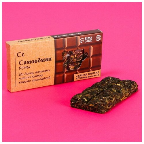Чайная плитка «Самообман» вкус: летний рассвет (китайский крупнолистовой зелёный чай, ягоды малины, имбирь, лепестки подсолнечника, лист земляники), 50 г.