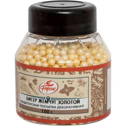Посыпка кондитерская жемчуг перламутровый (золотой) Фарсис 100 грамм, ПЭТ-банка
