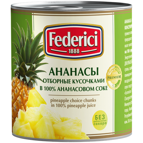 Ананасы FEDERICI отборные кусочками в ананасовом соке 435 мл