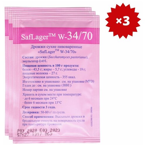 Пивные дрожжи для лагера Saflager W-34/70 (11,5 г), Fermentis, 3 шт.